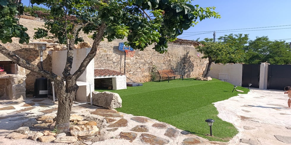 El patio delantero es un lugar de ocio y reunión, en el encontrarás aparcamiento, barbacoa, zona de mesas, columpio para los más pequeños y canasta de baloncesto.